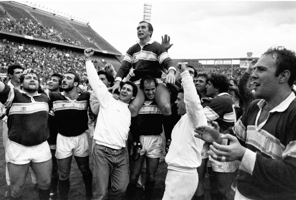 El festejo del partido tuvo, como era de esperar, a Hugo Porta en andas, recibiendo el cariño de su club y del rugby.