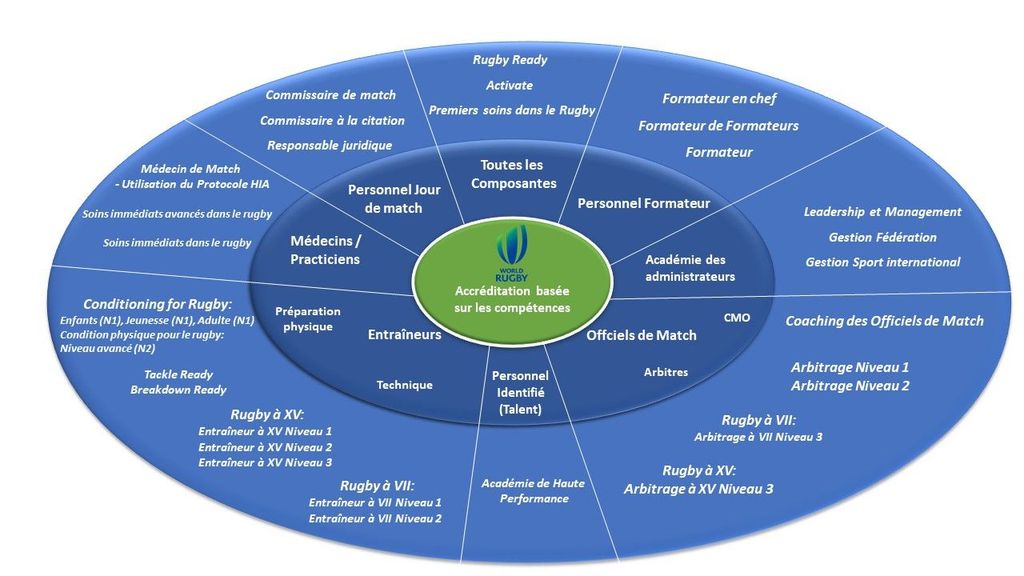 Le diagramme ci-dessous représente l'ensemble du portefeuille de cours en présentiel de World Rugby.